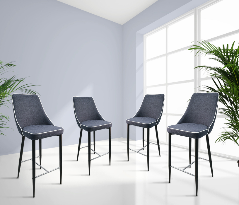 Барный стул. Спинка отделана по контуру контрастным кантом, что делает его очень стильным. Опоры из металлической трубы, порошковая краска. Размер 42x52x101cм. Комплект, 4 стула.