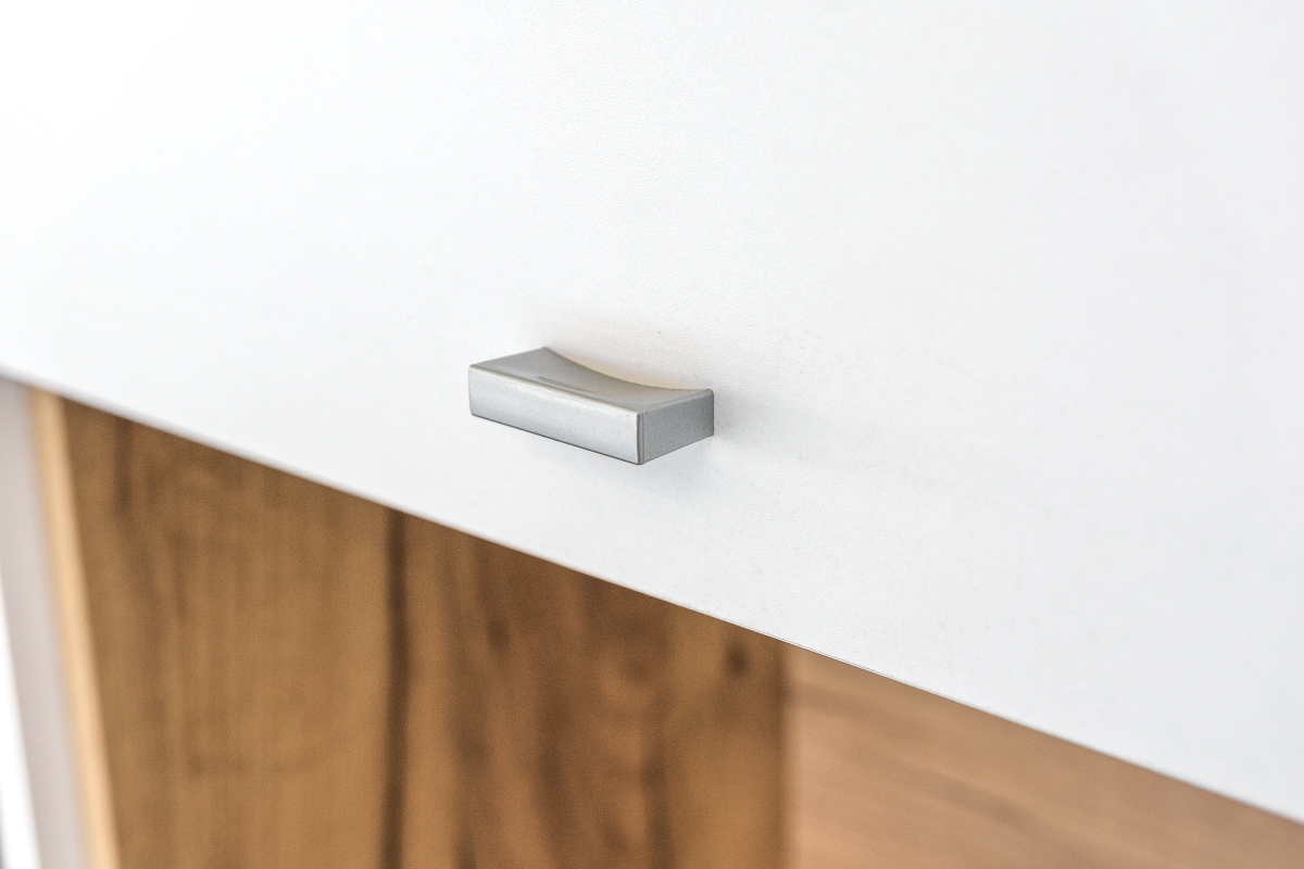Тумба под ТВ выдержанная в традициях стиля минимализм, сочетание модного белого цвета с теплым древесным оттенком.