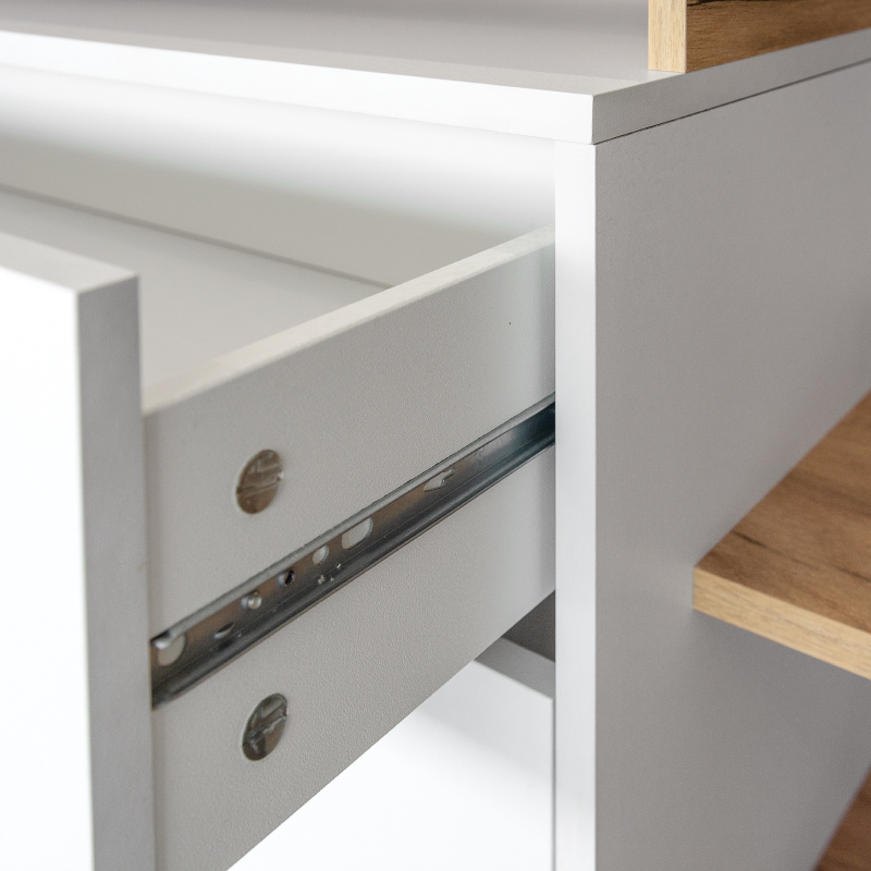 Правое занимает выдвижной ящик и секция с откидной дверкой.