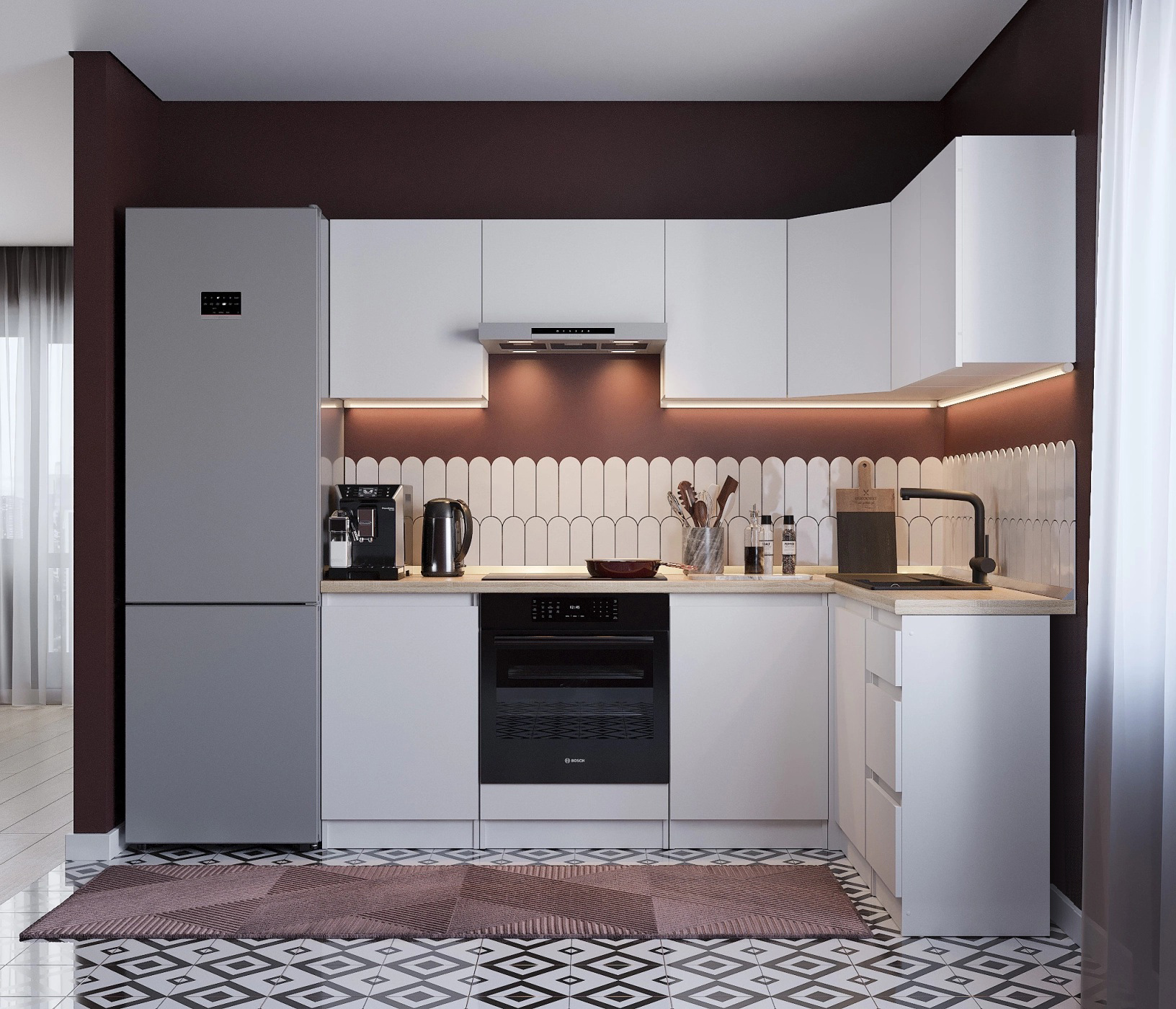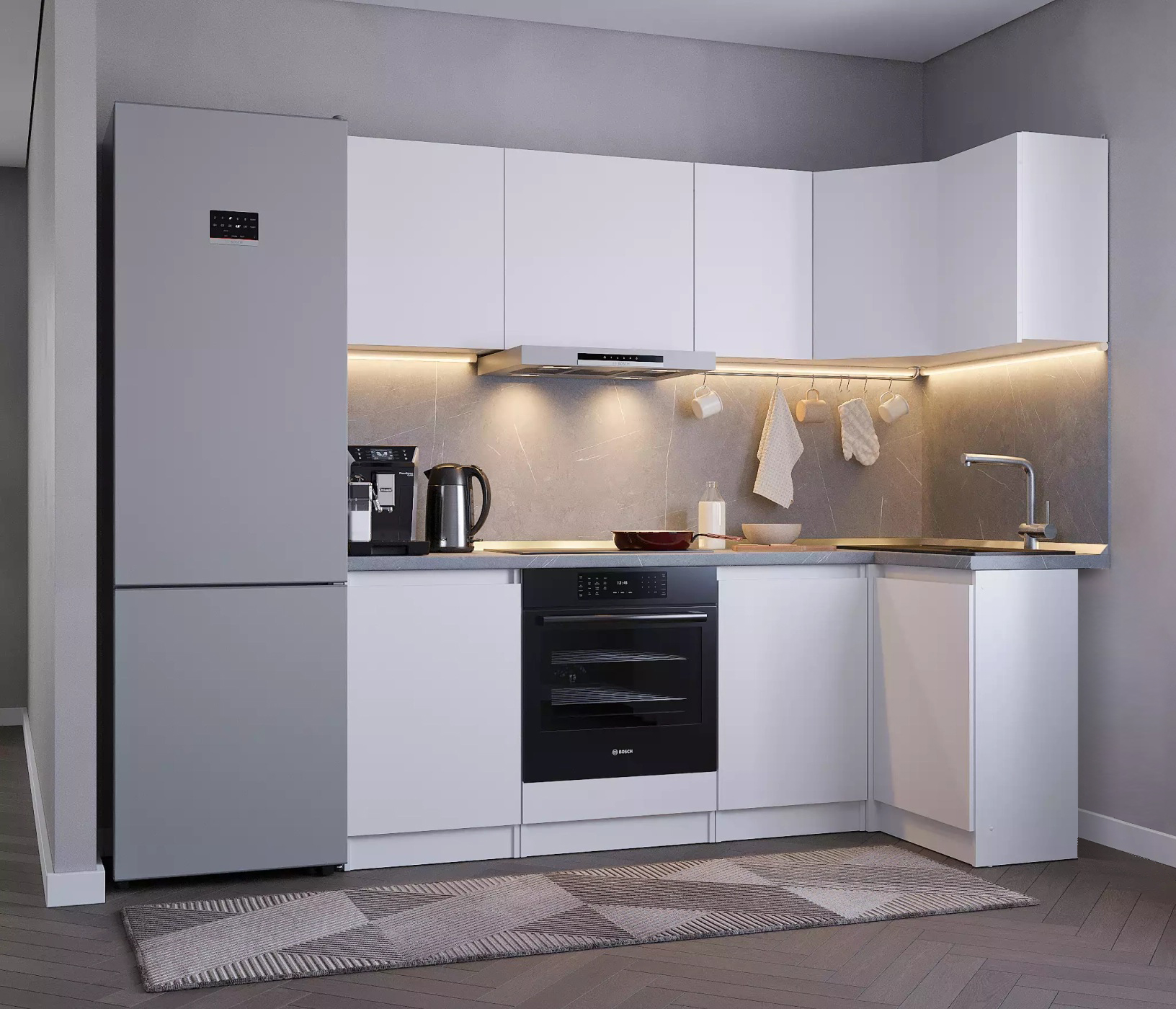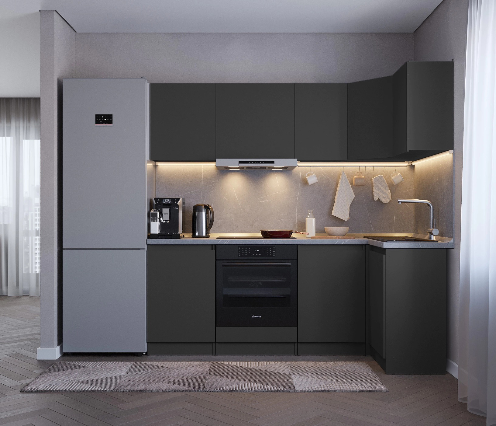 Столешница, стеновая панель, мойка, сушка и бытовая техника приобретаются отдельно.