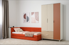Односпальная кровать-тахта Марвел 90 с мягкой обвикой в терракотовом оттенке — прекрасное решение для современной и яркой комнаты для подростка или ребенка.