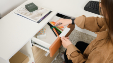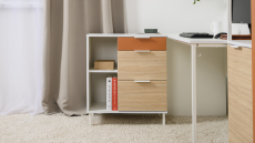 Конструкция с тремя выдвижными ящиками. Ящики разной глубины, установлены на шариковые направляющие полного выдвижения.