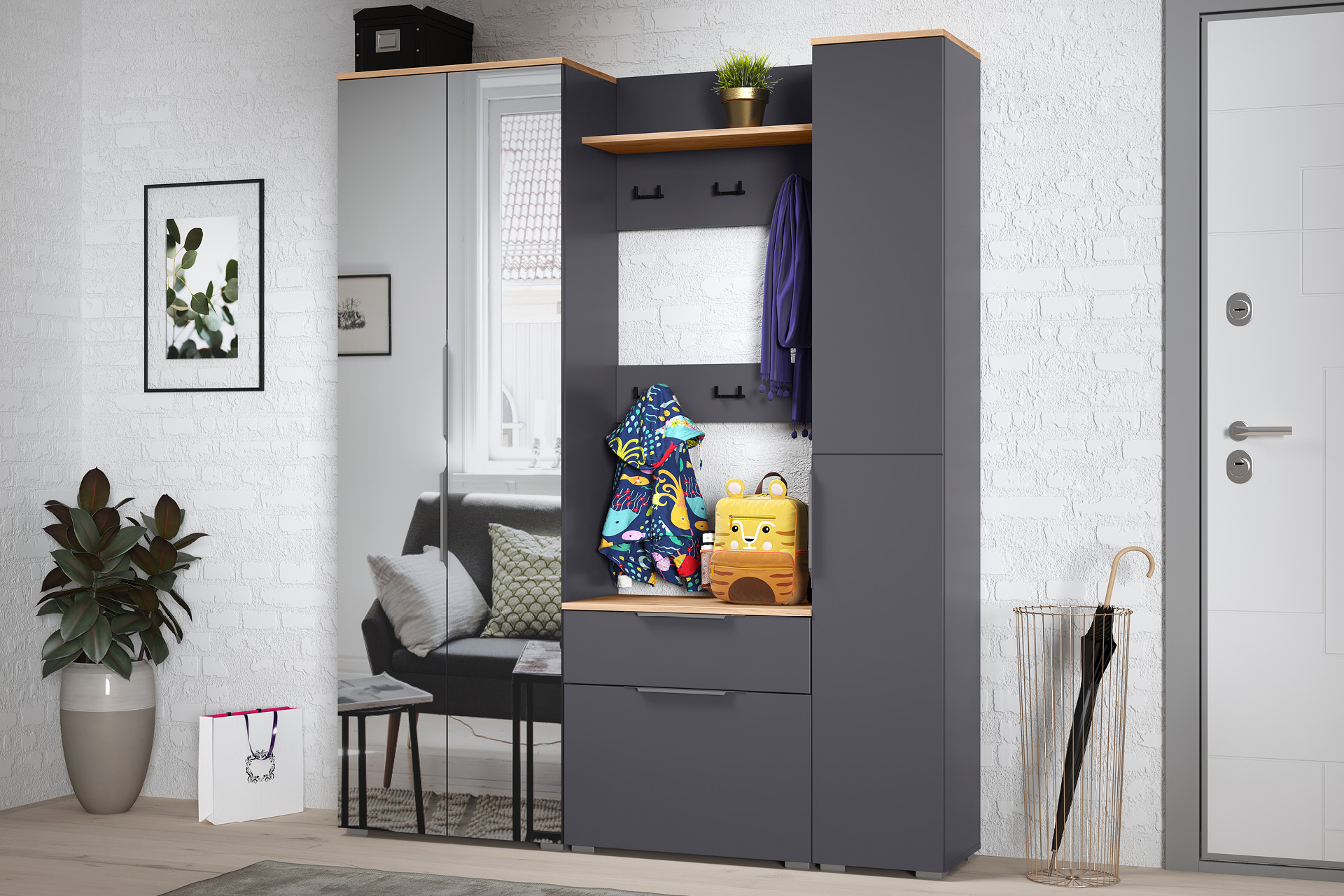 Вешалка Октава 15.14.02, серый графит, дуб золотой крафт Код R0000300965