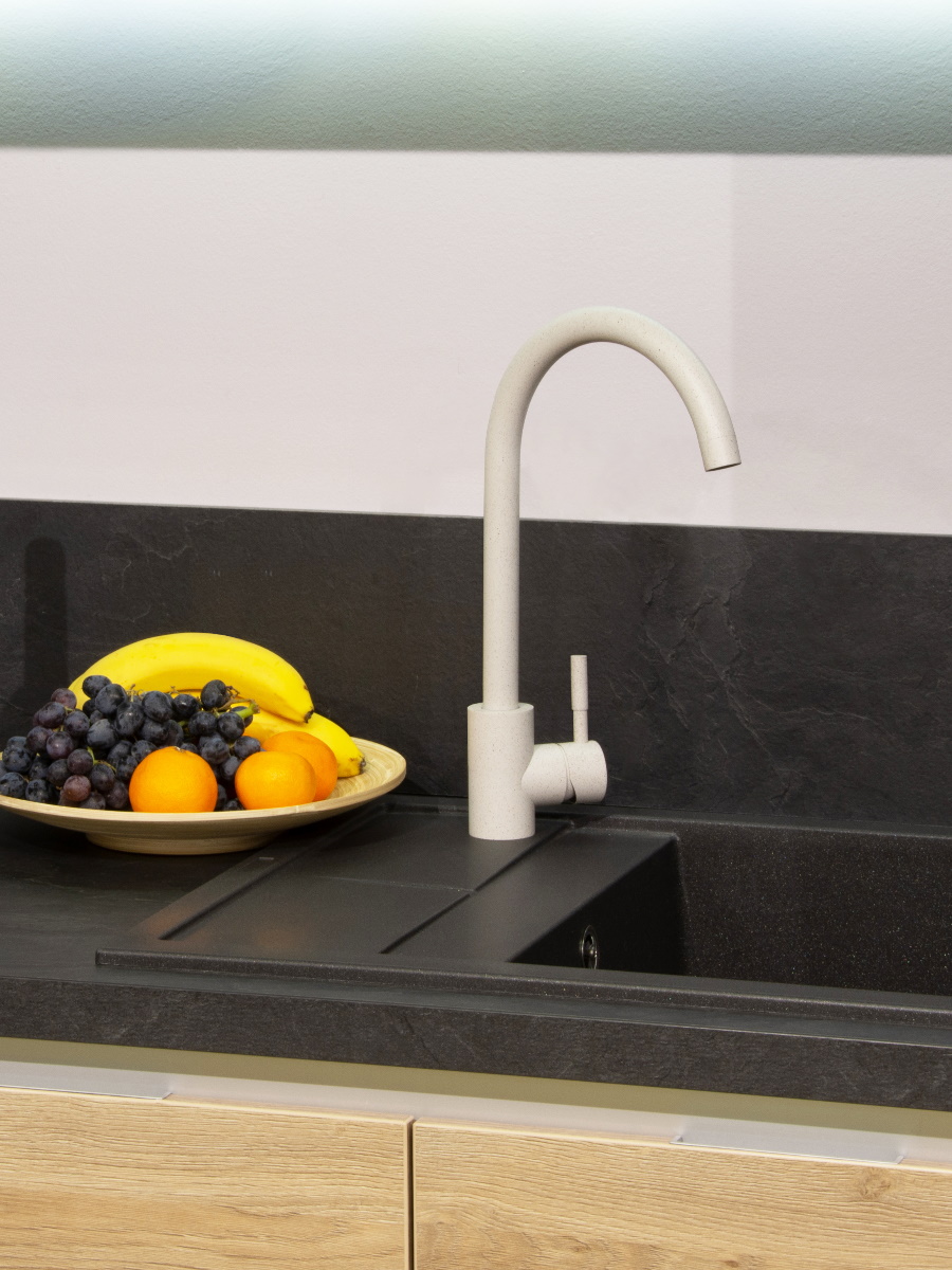 Смеситель для кухни GRON изготовлен из нержавеющей стали.