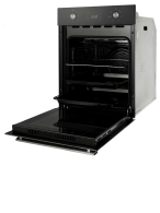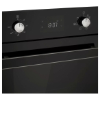 Электрический духовой шкаф встраиваемый узкий, 45 см, 7 режимов, объем духовки 52л, утапливаемые переключатели, дисплей Snow White, фронтальная поверхность Full Black, хромированные боковые решетки, панель управления - черное стекло, универсальный противень, дополнительный противень, решетка-гриль, двойное стекло дверцы, максимальная температура приготовления 300 оС, регулировка яркости дисплея и громкости звукового сигнала, защитное отключение при перегреве, охлаждающий вентилятор, электронный таймер 10 часов, 450х565х596 мм.