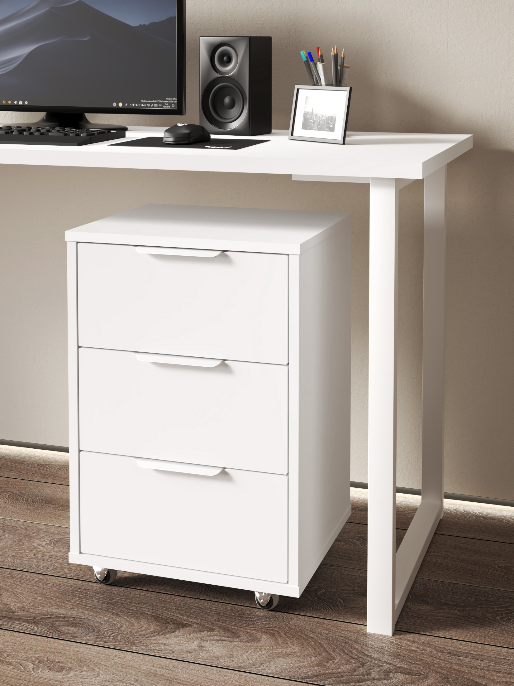 Размеры модуля (ш/в/г) в мм: 404х623х350 Материал корпуса/фасада: ЛДСП 16мм, МДФ 16мм Тумба мобильная К-55 подойдет для бизнеса, для рабочего места. Тумба оснащена 3-мя выдвижными ящиками для различных мелочей. Фурнитура: телескопические направляющие полного выдвижения без доводчиков Металлические ручки Фасады ящиков МДФ Прорезиненные колесики с металлической крепежной платформой, с возможностью поворота на 360 градусов Доставка и сборка: мебель поставляется в разобранном виде, в надежной упаковке, с подробной инструкцией по сборке. Сборка осуществляется самостоятельно или с привлечением специалистов.