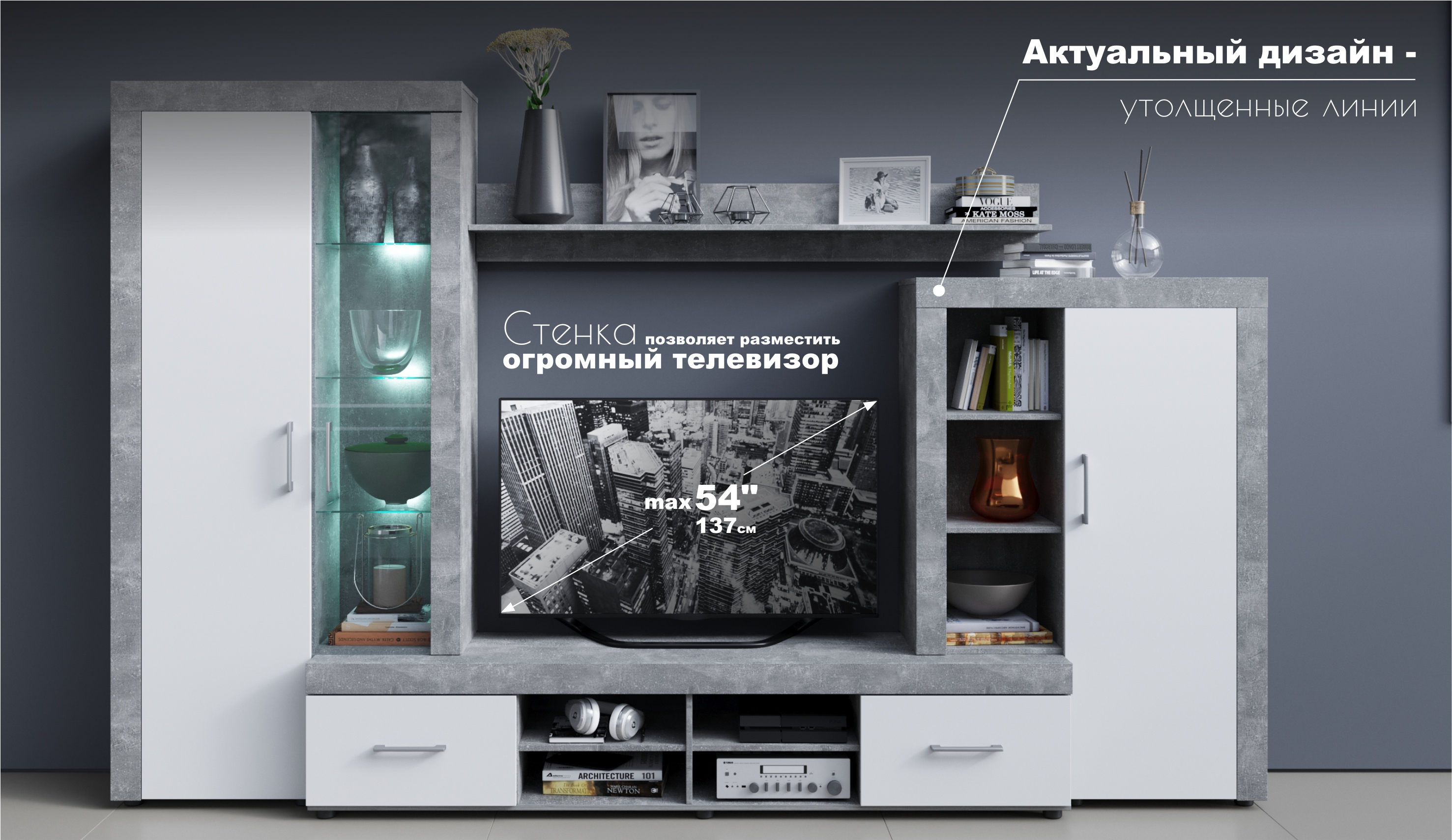 Стенка Джерси – светлая, компактная и функциональная. Беспроигрышный вариант для небольших комнат. В модели используются утолщенные линии корпуса, вместительные ящики полного выдвижения, регулируемые ножки. Благодаря модным и стильным цветовым решениям, гостиная подойдет под любой интерьер, создаст дома теплую уютную атмосферу.