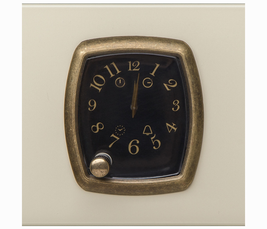Духовой шкаф в ретро-дизайне, аналоговые часы в классическом стиле Frank Muller с функцией времени, таймера и отключения, 6 режимов нагрева, объем духовки 67 л, трехслойное остекление, автоматическое отключение, в комплекте: 2 противня, хромированная решетка, цвет - слоновая кость; цвет ручек - бронза