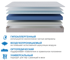Матрасы на основе пружинных блоков, уверенно сдают свои позиции, им на замену приходят современные беспружинные модели, в основе которых лежат пены, пористая структура которых гораздо более точно способна повторять контуры тела и тем самым уменьшать обратное давление, уменьшая риск пережатия сосудов, что в свою очередь улучшает кровообращение. Данная модель сделана с применением двух разных по своей структуре пен, одна из которых обладает эффектом памяти, который работает от тепла выделяемого телом, т.е. при воздействие тепла пена становится мягче и вы в нее проваливаетесь, при этом части на которые тепла выделяется меньше, сохраняют свои прежние размеры, данное свойство позволяет добиться эффекта "объятия". При этом пена мемори имеет ячеистую структуру, которая позволяет создавать эффект микромассажа, что еще больше увеличивает кровоснабжение. Вторая сторона матраса более жесткая и упругая, что позволит менять степень жесткости спального места по своему усмотрению. При выборе матраса следует помнить о том, что любой матрас не отвечает за правильность положения головы и шеи, их здоровье зависит от правильно подобранной ортопедической подушки. Для увеличения срока службы матраса рекомендуется его использование с защитным чехлом AquaStop. Поставляется скрученным в рулон, что существенно упрощает его транспортировку, ведь в таком виде, матрас войдет почти в любую легковую машину. |