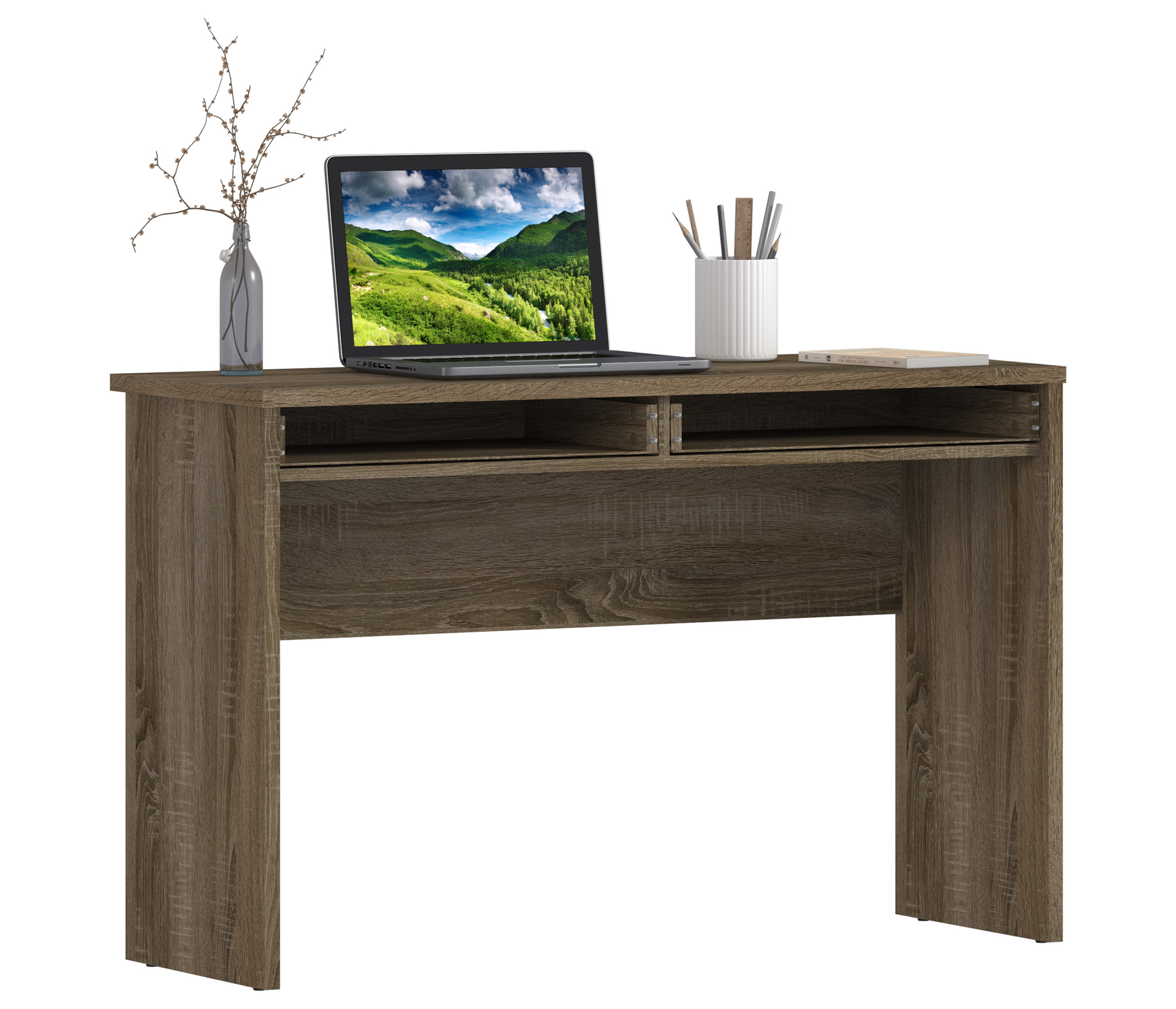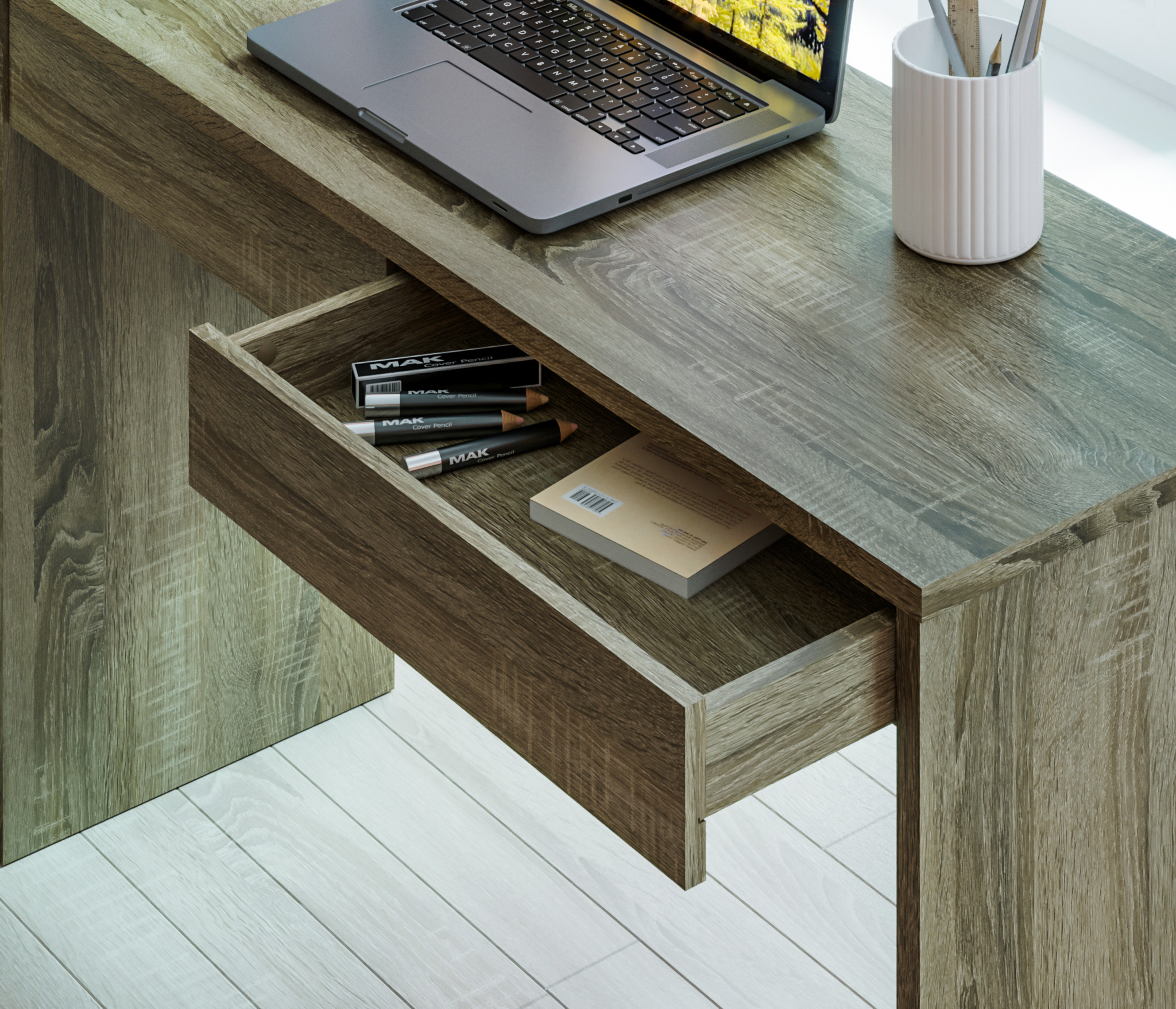Корпус витрины выполнен из современного и прочного ЛДСП в цвете «Дуб Сонома Трюфель». Стильный дизайн, прочные выдвижные механизмы и качественный материал отделки дают возможность стилизовать стол Монако как соло, так и в составе одноименного гарнитура.
