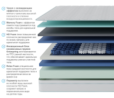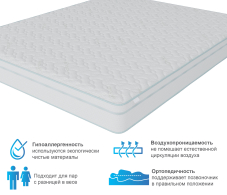 Одним из важнейших условий комфортного и здорового сна, является - правильная температура вокруг. Этот матрас создан для того, чтобы температура вашего спального места была идеальной для вас. известно, что для комфортного сна, желательна температура не много ниже температуры тела. Температура матраса полностью зависит от температуры находящегося на нем человека, в данном случае одна из сторон матраса сделана из ткани, нити которой состоят на 50% из термогеля, что позволяет выводить лишнее тепло за пределы зоны сна, при этом не охлаждая спальное место, а создавая именно правильно температуру для , а именно на 1-2 градуса ниже температуры тела, таким образом вы можете быть уверенны, что на матрасе с такой тканью вам никогда не будет жарко или холодно. В качестве комфортного слоя мы используем 2-х сантиметровую пену мемори, под которой находится 3-х см слой пены средней жесткости.Дальше располагается 3 х зональный блок пружин октаспринг с 10 см бортами по периметру из особо жесткой пены, которые не позволят матрасу промяться. Завершает этот блок очень жесткая и прочная пена, которая выполняет функцию платформы и равномерно распределят нагрузку по всей площади матраса. Вторая сторона матраса – это классический пенный беспружинный матрас, каждая сторона матраса работает независимо друг от друга. Эта сторона более жесткая. Таким образом пользователь может быть уверен в своем выборе матраса, когда не уверен какой жёсткости матрас ему требуется. Пружины октаспринг отличаются от обычных пружин тем, что они работают в 3- х направлениях и повторяют контуры спящего с точностью до нескольких миллиметров, в отличие от обычных пружин, которые используются в большинстве современных матрасов. Диаметр пружин из металла составляет от 3 до 6 сантиметров и такой блок просто физически не может подстраиваться точнее своего диаметра. Многие не понимают почему это так важно и зачем эта точность, для этого достаточно потрогать плечо или бедро и нащупать самое жесткое место, это как раз те точки на которые приходится основная нагрузка во время сна. Вы поймете , что их площадь меньше чем площадь пружины с диаметром 6 см. Поэтому ортопедический эффект от матрасов с такими пружинами ниже. Если сжимать пружину октаспринг она подстраивается только там, где происходит давление, обычная же пружина работает все своей площадью. В данной модели использованы 2 типа пружин, отличаются они плотностью и жесткостью пены, зоны располагаются таким образом, чтобы плечи и таз оказывались на более жестких пружинах,из-за того, что в этих зонах нагрузка наиболее высокая. Это универсальный матрас, в основе которого лежат самые современные и передовые технологии. Сочетающий в себе плюсы матрасов октаспринг и полностью беспружинных моделей.Для сохранения свойств и внешнего вида матраса, а также для разительного увеличения срока службы матраса рекомендуем использование матрас с защитным чехлом АкваСтоп. Любой матрас отвечает за правильность положения во время сна лишь нижнего и среднего отделов позвоночника, а за шейный отдел отвечает правильно подобранная ортопедическая подушка.