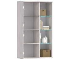 Габаритные размеры витрины – ширина 88 см, высота 150 см и глубина 35 см. В левой части витрины расположены отделения с распашными дверцами, которые оснащены полками. В правой части - отделение со стеклянной дверцей и тремя стеклянными полками. Произведена витрина из современных материалов - КДСП и МДФ.Классическое исполнение, светлый оттенок оформления «Дуб Сонома белый», подобранная фурнитура и качественные крепёжные механизмы говорят о достойном качестве витрины Флоренция СБ-2407.Шкаф может использоваться как отдельный предмет мебели, так и в сочетании с другими элементами из коллекции Флоренция.