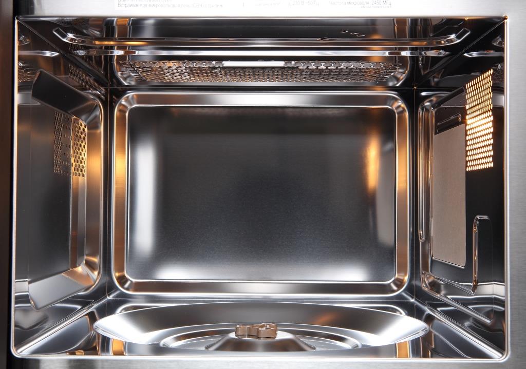 Встраиваемая микроволновая печь с грилем, 20 л, номинальная входная мощность микроволны 1050 Вт, номинальная выходная мощность микроволны 700 Вт, гриль 1000 Вт, дисплей Snow White, электронное управление, 8 автоматических программ, разморозка по весу и времени, комби режимы, внутреннее покрытие сталь, нержавеющая сталь + черное стекло, габариты для встраивания (ШхВхГ): 560х362х320 мм.