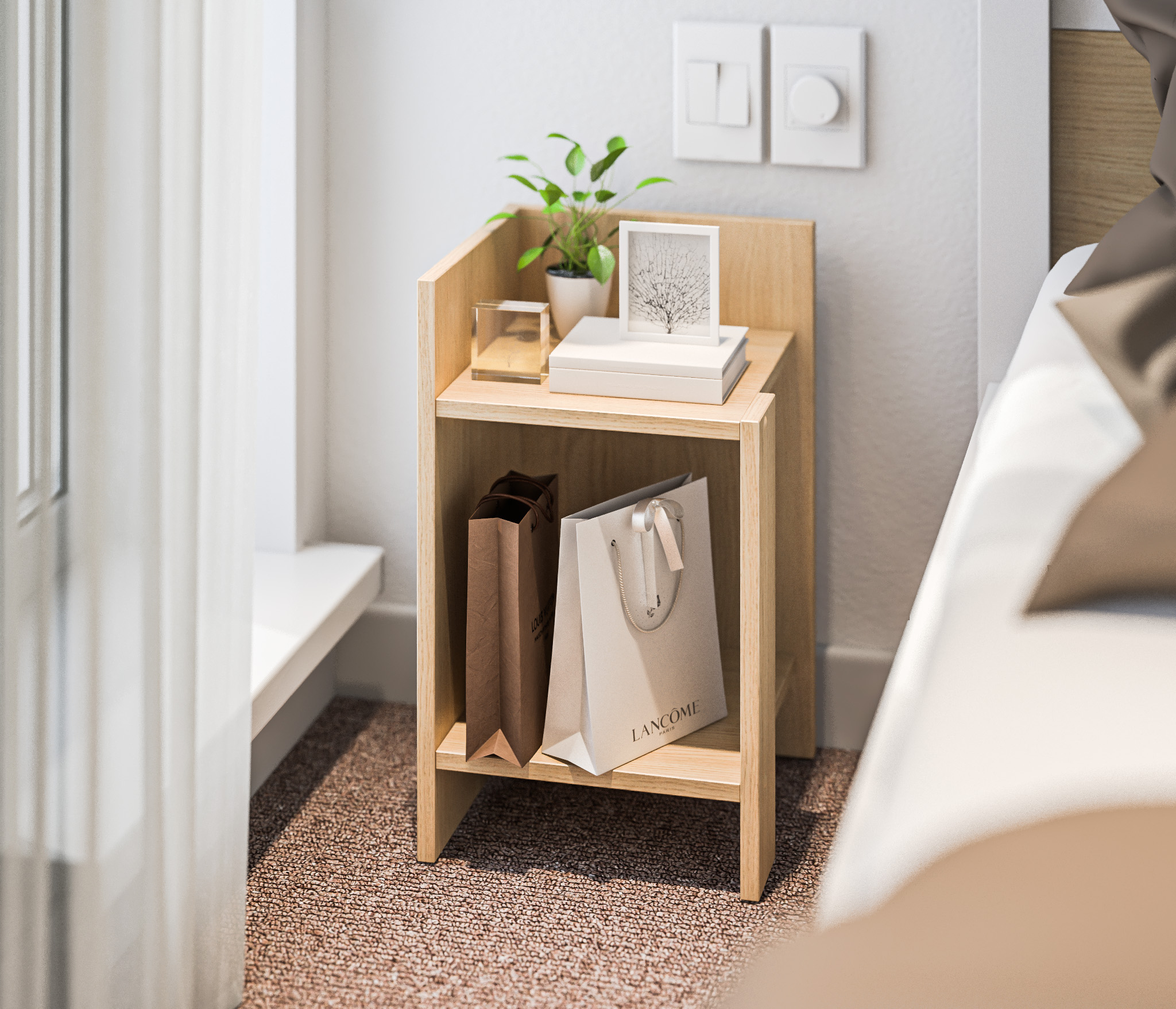 При компактных габаритных размерах – ширина 30см, высота 50,4 см и глубина 29,6 см, тумба довольно вместительная: на имеющихся полочках можно разместить книги, аксессуары и предметы декора. Тумбу можно использовать и как придиванный столик, за которым можно перекусить или выпить чашечку чая.