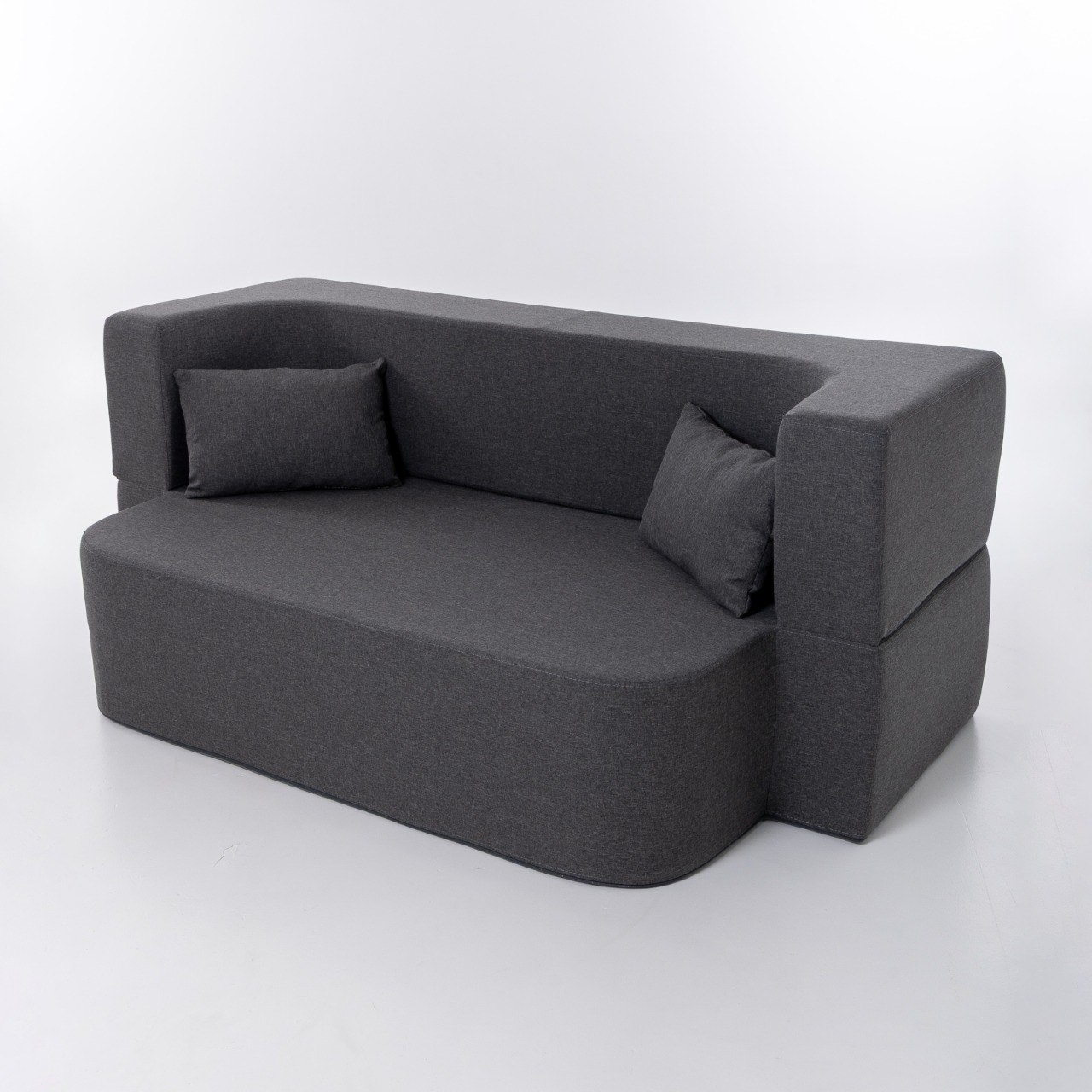 Вес всего 25 кг. Это позволит Вам без усилий поднимать и передвигать малогабаритный трансформер при уборке. Легкость даст возможность перемещать диван-кровать в разные помещения. Благодаря отсутствию твердых элементов в конструкции софа с подлокотниками безопасна для ребенка и идеально впишется в детскую или комнату подростка.