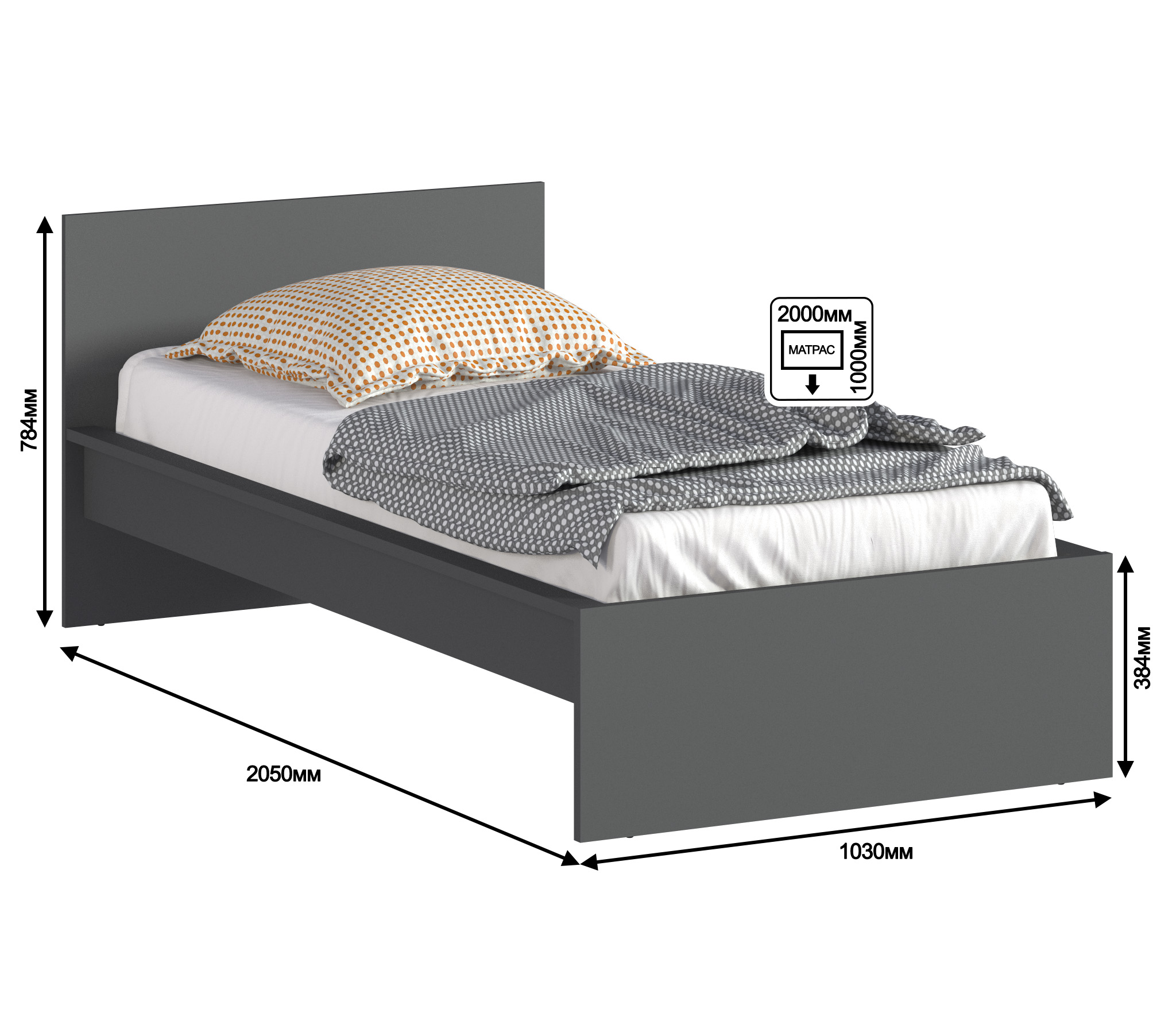 Дополнительно рекомендуем приобрести матрас размером 900х2000 мм.