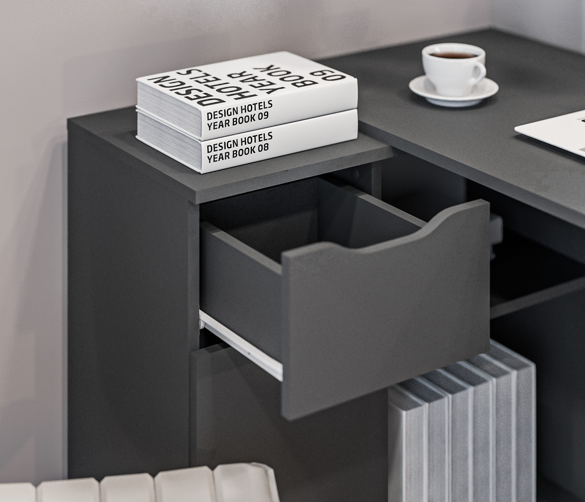 Размеры стола составляют 750 мм в высоту, 1190 мм в ширину и 800 мм в глубину, обеспечивая достаточно места для комфортной работы. Благодаря угловому дизайну, стол эффективно использует пространство и идеально вписывается в угол комнаты.