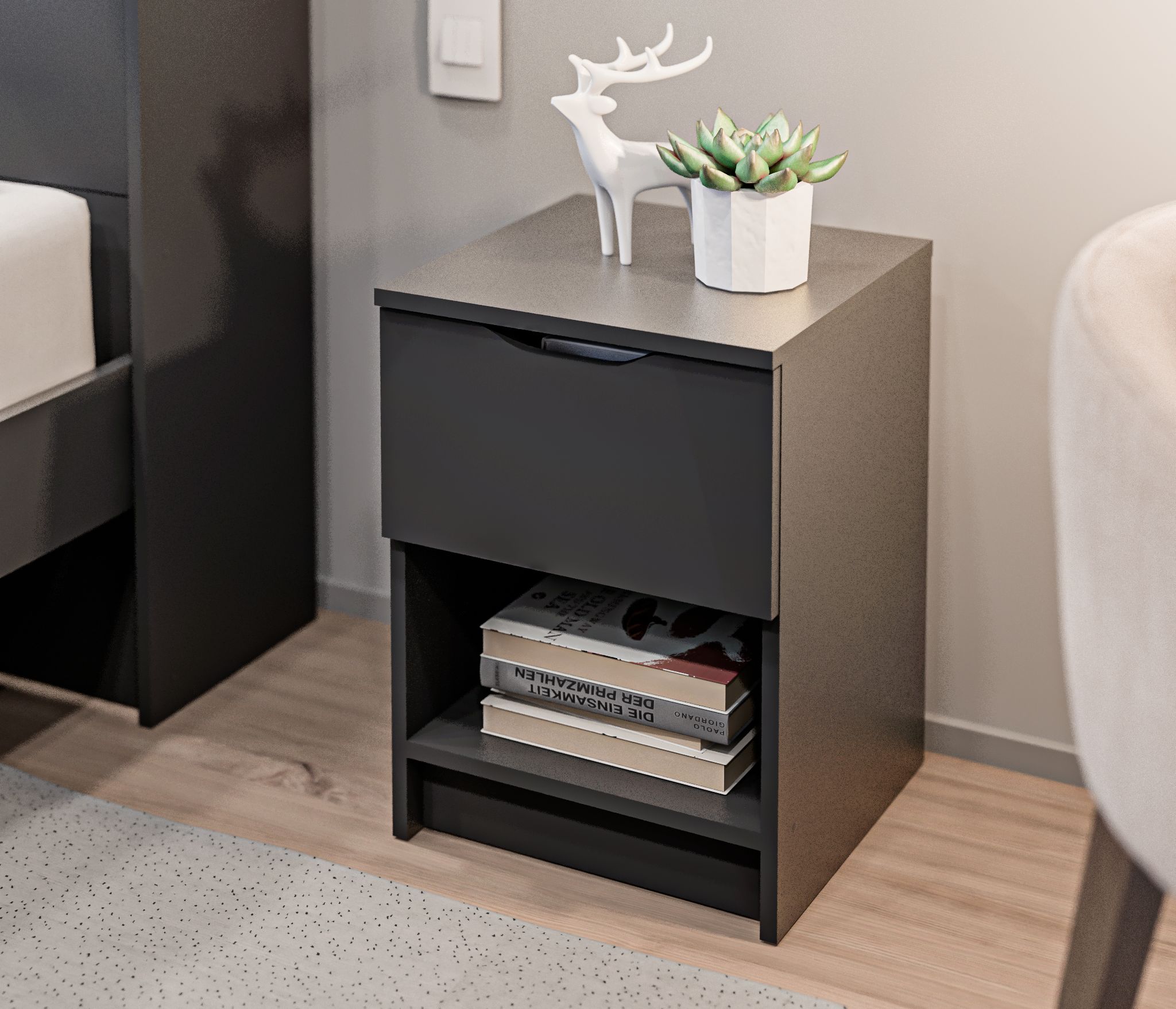 Стол оснащен одним ящиком и дверцей, которые предлагают удобное место для хранения канцелярских принадлежностей, документов и других необходимых предметов. Кроме того, имеется одна большая полка, которая предоставляет дополнительное пространство для размещения книг, файлов или других материалов.