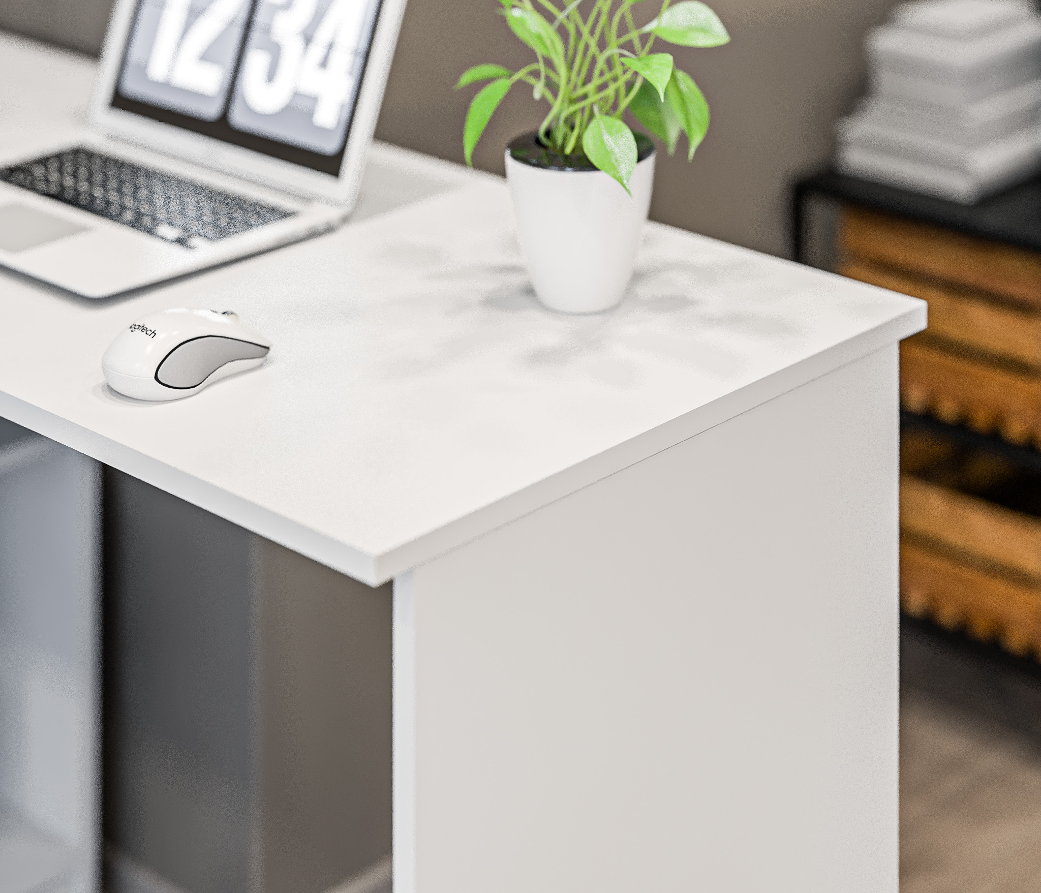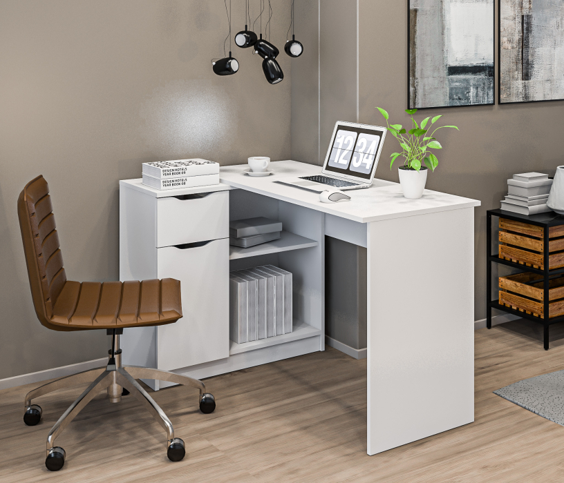 Размеры стола составляют 750 мм в высоту, 1190 мм в ширину и 800 мм в глубину, обеспечивая достаточно места для комфортной работы. Благодаря угловому дизайну, стол эффективно использует пространство и идеально вписывается в угол комнаты.