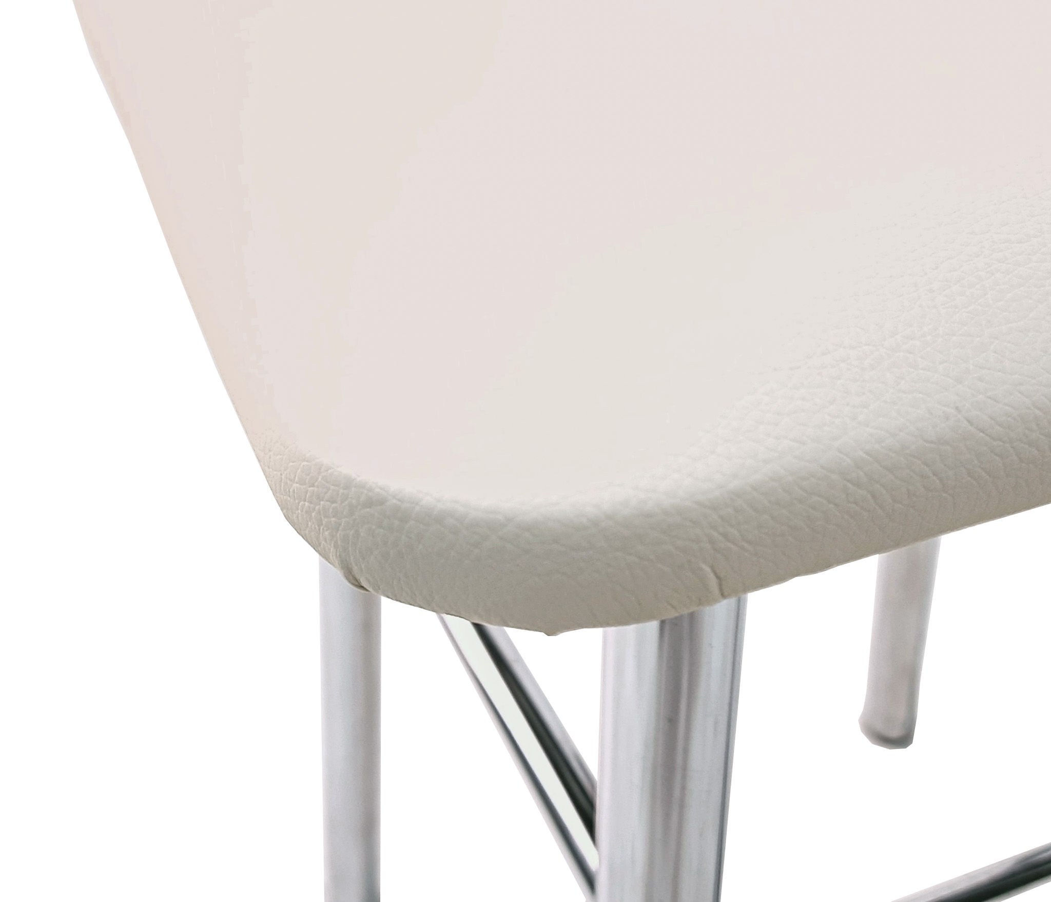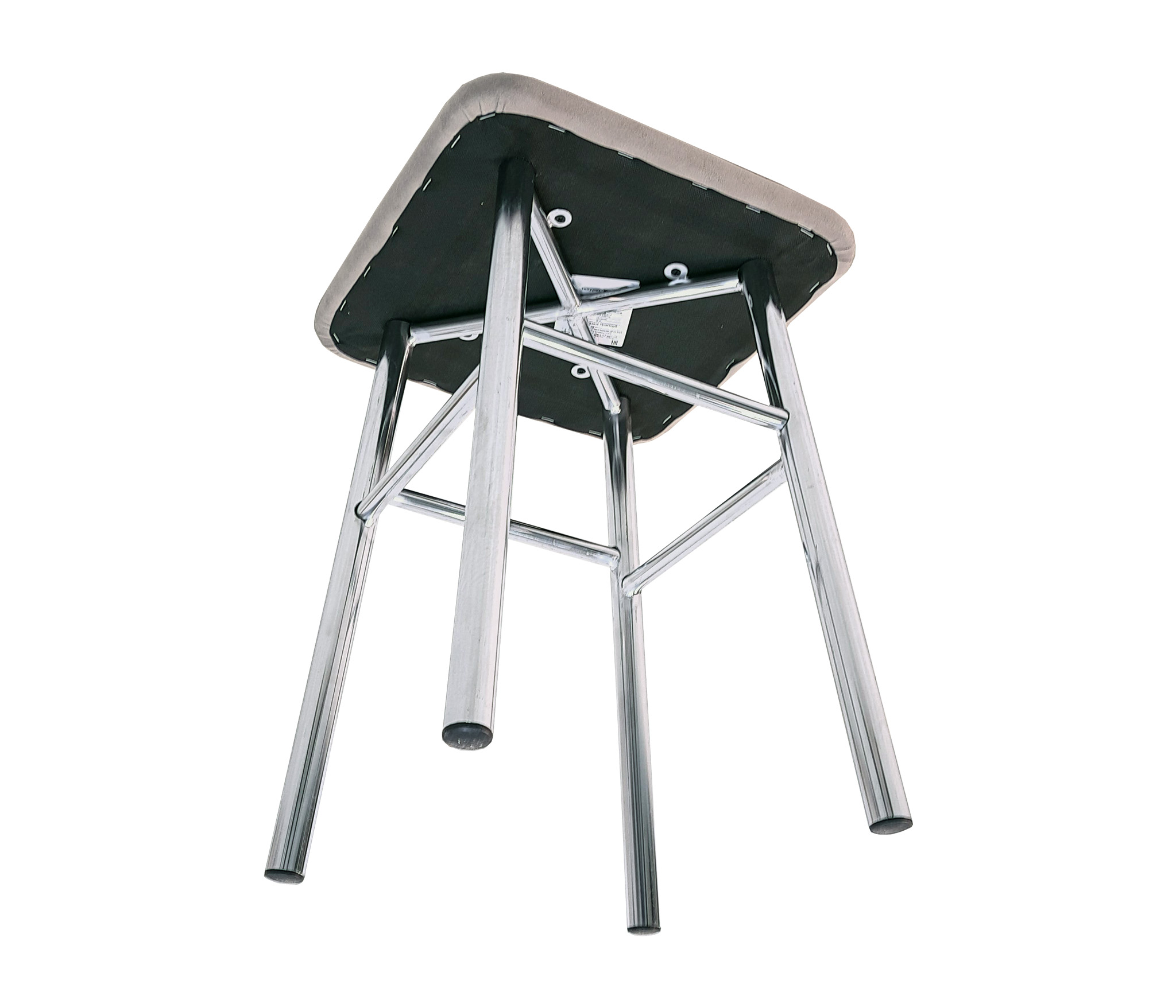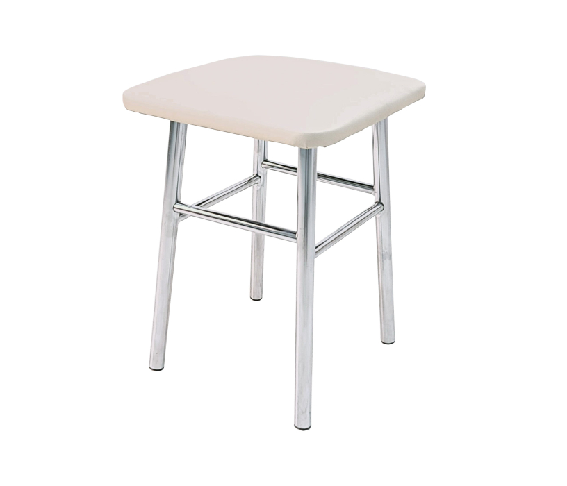 Каркас выполнен из хромированной трубы D25 мм; толщина трубы 1 мм. Сиденье из к/з. Высота табурета 450 мм, ширина сидушки 330 мм, ширина по опорам внизу 270 мм.