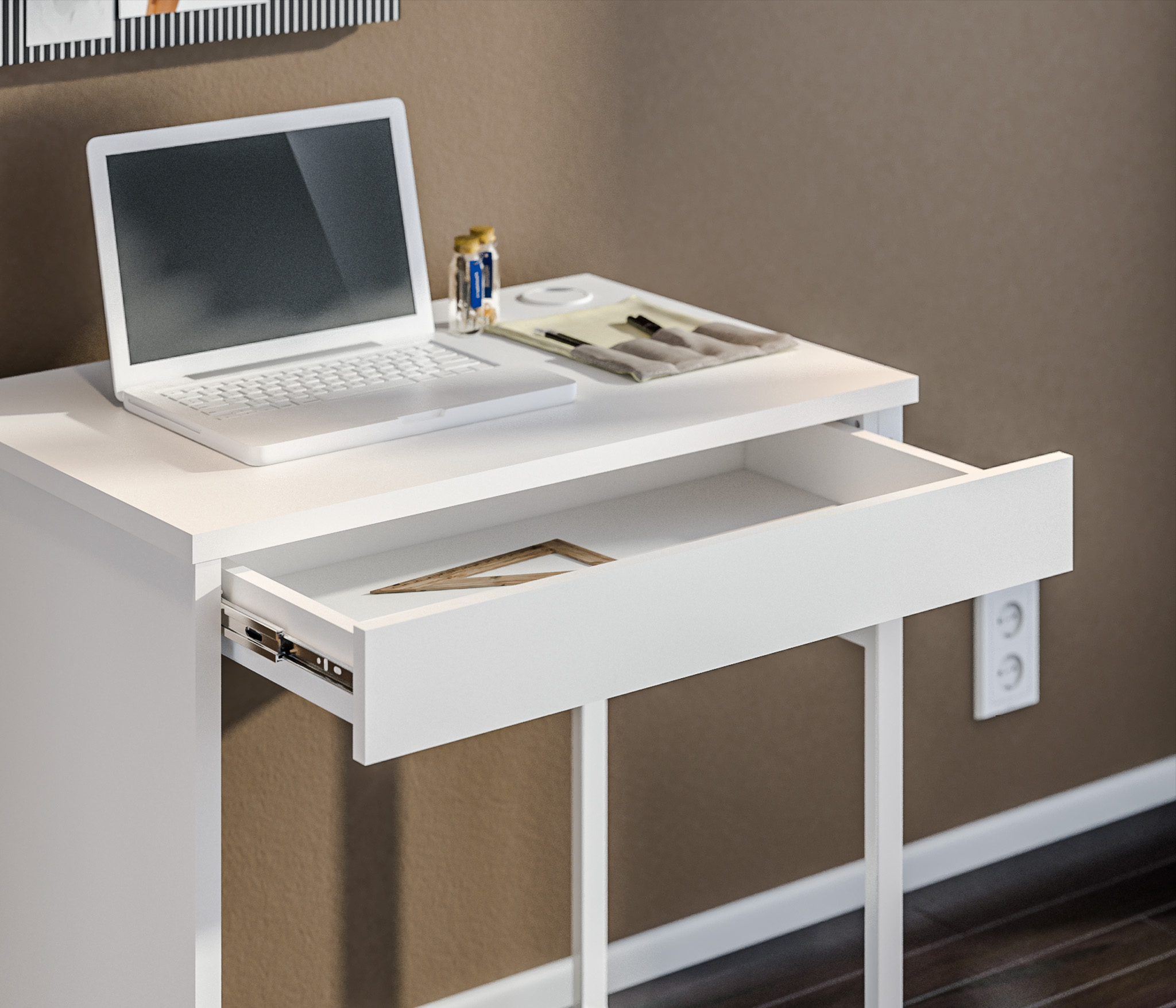Мика СБ-3308 оборудован ящиком, который предлагает дополнительное пространство для хранения канцелярских принадлежностей, документов или других необходимых предметов, помогая поддерживать рабочую область в чистоте и порядке.