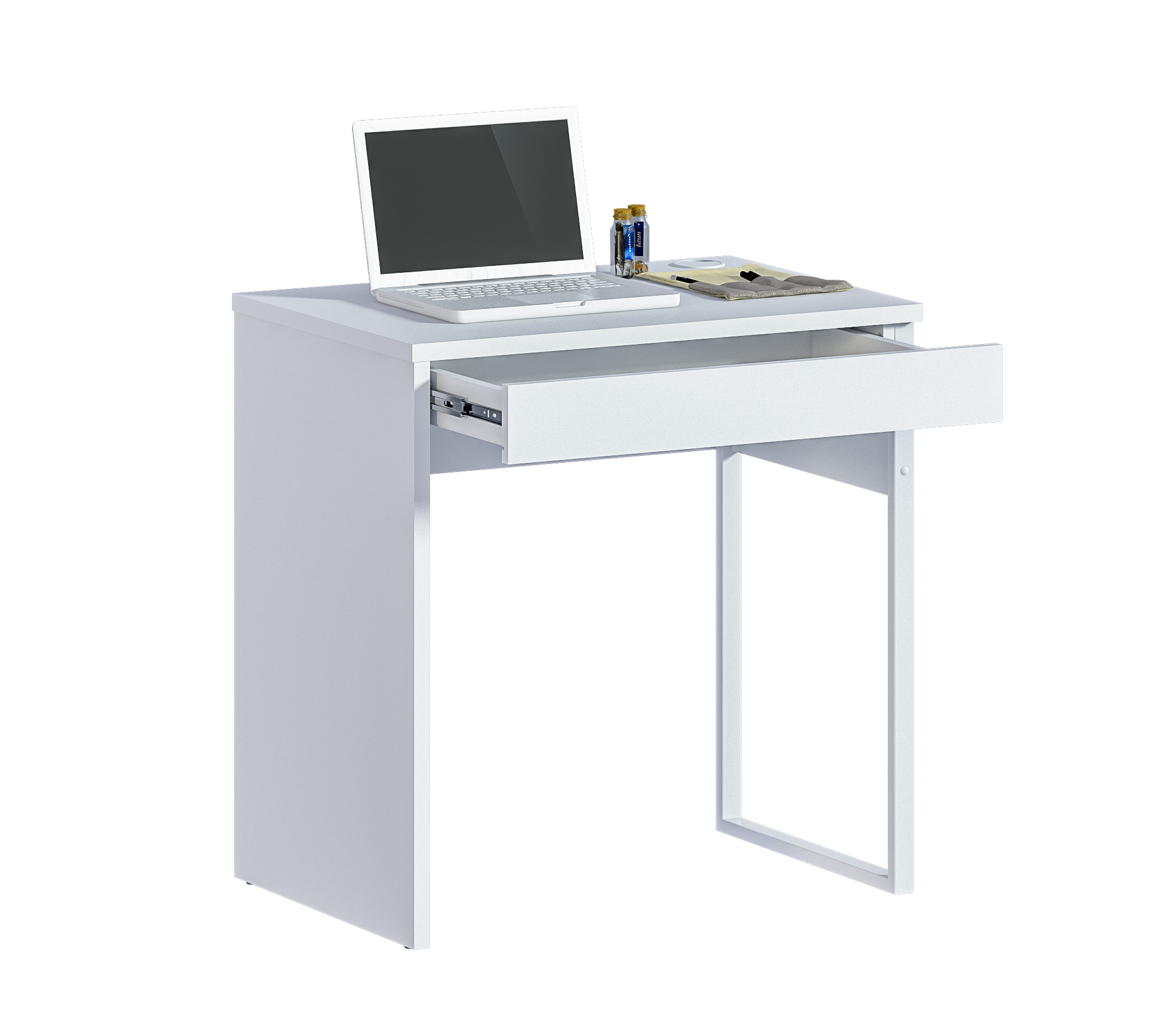 Стол изготовлен из высококачественного ЛДСП белого цвета, этот материал обеспечивает прочность и долговечность стола, а также делает его легким в уходе.