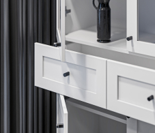 МС Твин предоставляет возможность собрать шкаф или стеллаж по своему вкусу. Вы сами выбираете размеры, цвет ручек: белый или черный, наполнение: ящик или полки. Помимо этого, вы можете решить, оставить фасады глухими или выбрать стеклянные, чтобы добавить прозрачности и легкости в ваш интерьер. Создайте шкаф-стеллаж, который идеально подходит для ваших потребностей и вписывается в ваш стиль.